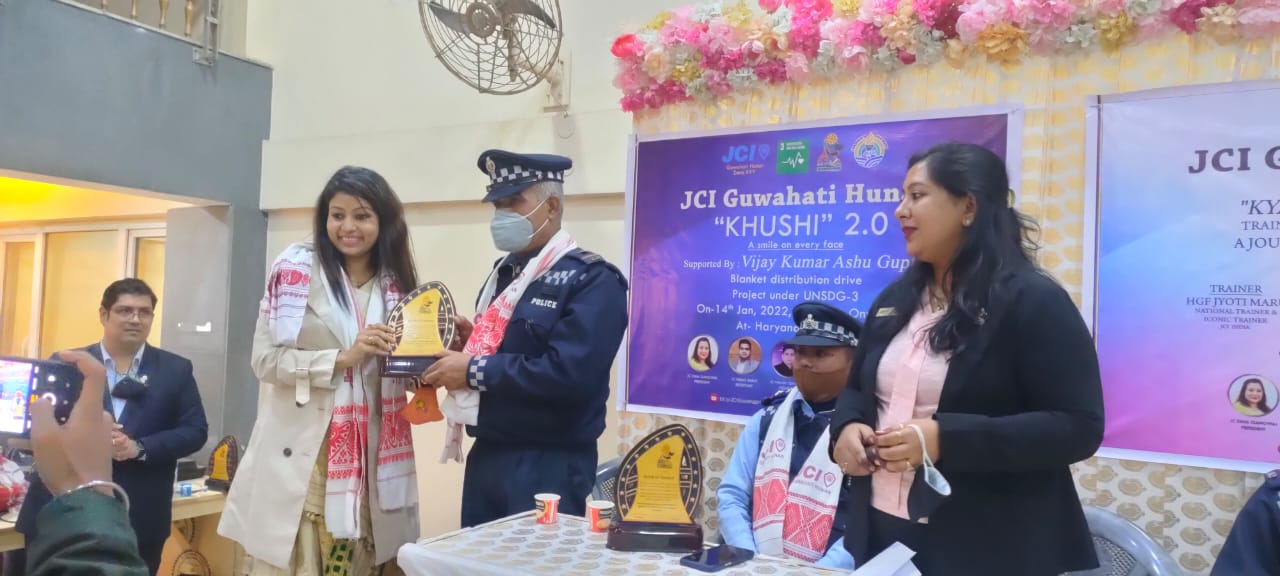 गुवाहाटी, रोहित जैनः राष्ट्रीय *सड़क सुरक्षा सप्ताह के मौके पर जेसीआई गुवाहाटी हुनर के सदस्यों ने हरियाणा भवन में 7 ट्रैफिक पुलिसकर्मियों को सम्मानित किया । इस अवसर पर जेसीआई गुवाहाटी हुनर की अध्यक्ष जेसी ईशा गंगवाल ने बताया कि सड़कों को सुरक्षित रूप से प्रबंधित करने में उनके निस्वार्थ कार्य के लिए सभी को एक फूलाम गामोचा और ट्रॉफी देकर सम्मानित किया गया । इस अवसर पर ट्रेफिक पुलिस अधीकारी ने सभा को संबोधित करते हुए कहा कि सभी को वाहन चलाते समय ट्रैफिक नियमों का पालन करना चाहिए । दोपहिया वाहन चलाते समय हेलमेट का प्रयोग करें , फुटपाथ को पैदल यात्रियों के लिए खाली रखें, सिटबेल्ट का प्रयोग करें , यह सभी की सुरक्षा के लिए अत्यंत जरूरी है। इस अवसर पर जीएमडीए की सुनीता भिलवारिया के साथ साथ जेसीआई ज़ोन 25 के पुर्व अध्यक्ष राजेश गंगवाल, जेडी ट्रेनिंग अमित पाटनी , और हुनर के सदस्य उपस्थित थे। इस आशय की जानकारी प्रचार सचिव जेसी ज्योति जैन पाटनी द्वारा प्रेस विज्ञप्ति में दी गई।