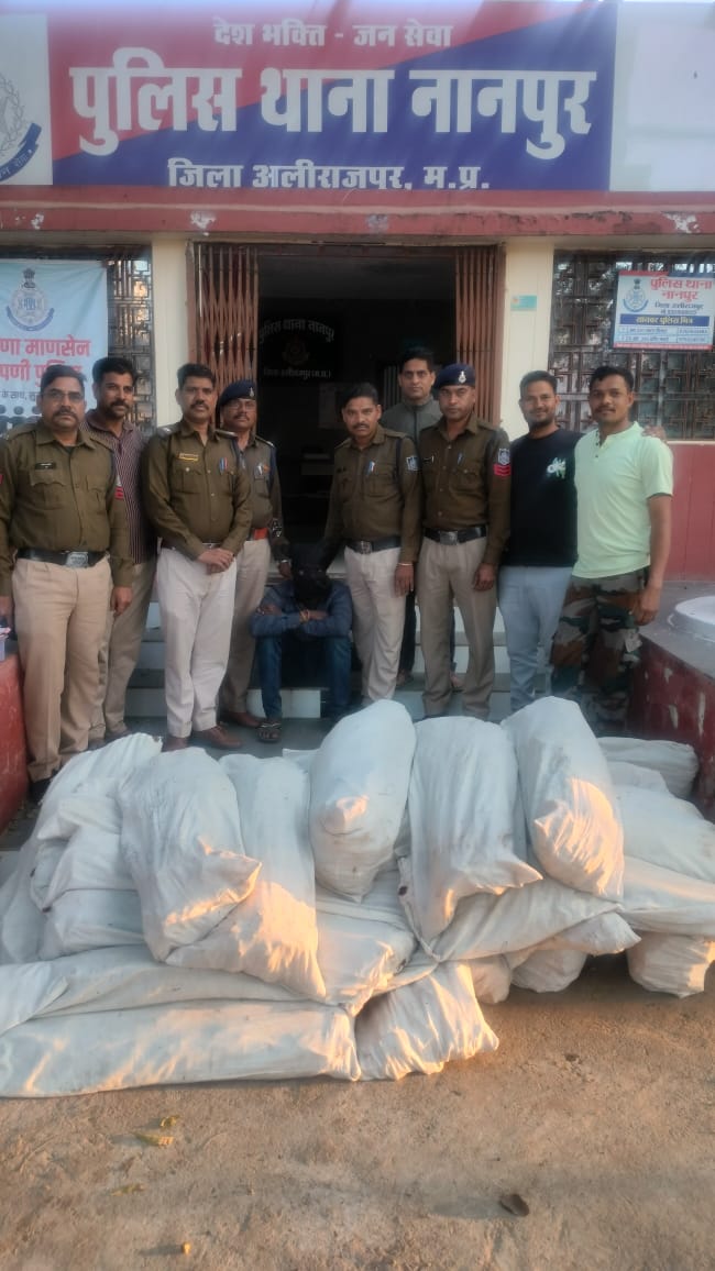 रिपोर्टर :- जीतेन्द्र वाणी राज, दिनांक: 16.01.2026, 1. थाना नानपुर पुलिस की बड़ी कार्रवाई, 2. मक्का की फसल के बीच अवैध रूप से उगाए गए 1.65 क्विंटल गांजे के पौधों के साथ आरोपी गिरफ्तार।, पुलिस अधीक्षक आलीराजपुर श्री रघुवंश सिंह के निर्देशन एवं अतिरिक्त पुलिस अधीक्षक श्री प्रदीप पटेल व अनुविभागीय अधिकारी पुलिस जोबट श्री रविन्द्र राठी के मार्गदर्शन में मादक पदार्थों के विरुद्ध थाना नानपुर पुलिस मे बड़ी कार्यवाही की गई है। नानपुर पुलिस टीम ने ग्राम कुशलवाई में दबिश देकर मक्का के खेत में अवैध रूप से उगाए गए लगभग 1900 नग हरे गांजे के पौधे जब्त किए हैं, जिनका बाजार मूल्य लगभग 2.50 लाख रुपये है। दिनांक 15 जनवरी 2026 को थाना नानपुर को मुखबिर के माध्यम से विश्वसनीय सूचना प्राप्त हुई कि ग्राम कुशलवाई के बुडेनला फलिया निवासी मुकेश पिता सोनिया डावर ने अपने खेत में मक्का की फसल की आड़ में अवैध रूप से गांजे की खेती की हुई है। सूचना की गंभीरता को देखते हुए थाना प्रभारी निरीक्षक राजेश डावर के नेतृत्व में विशेष टीम गठित की गई। गठित पुलिस टीम ने मुखबीर द्वारा बताये स्थान पर पहुँचकर घटनाक्रम की तस्दीकर कर आरोपी की घेराबंदी कर आरोपी मुकेश डावर को हिरासत में लिया गया। पश्चात खेत की सघन तलाशी के दौरान मक्का की फसल के बीच में गांजे के हरे पौधे होना पाए गए। पुलिस टीम ने पंचों के समक्ष कुल 1900 नग गांजे के हरे पौधे जड़ सहित उखाड़कर जब्त किए। • गांजे के हरे पौधों का कुल वजन: 165.48 किलोग्राम (1.65 क्विंटल), • अनुमानित मूल्य: 2,48,220/- रुपये, • अन्य सामग्री: आरोपी के पास से एक ओप्पो कंपनी का मोबाइल फोन भी जब्त किया गया है। आरोपी मुकेश पिता सोनिया डावर के विरुद्ध थाना नानपुर में अपराध क्रमांक 16/2026, धारा 8/20(बी) एन.डी.पी.एस. एक्ट के तहत प्रकरण पंजीबद्ध किया गया है। सराहनीय भूमिका: उक्त महत्वपूर्ण कार्रवाई में थाना प्रभारी निरीक्षक राजेश डावर, सउनि दलसिंह जमरा, सउनि मंजीत सिंह, प्रआर संजय मण्डलोई, सुरेश कन्नौज, आरक्षक धनसिंह, बलवंत, बलराम, अरुण, प्रताप एवं साइबर सेल टीम की सराहनीय भूमिका रही।