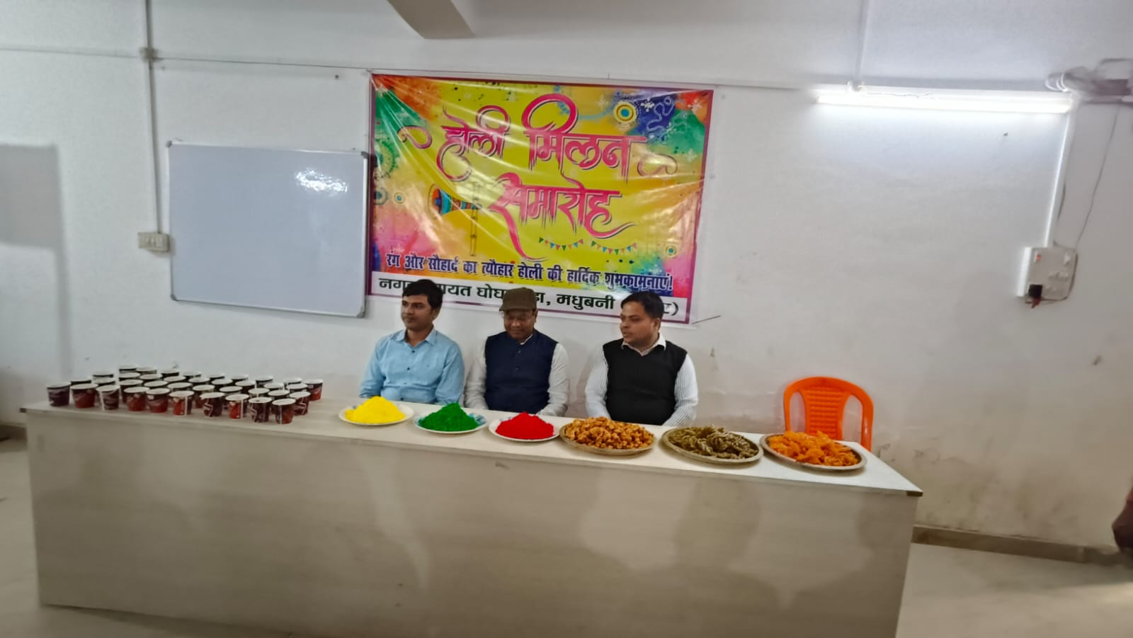 बिहार सहित पूरे देशभर में रंगों और आपसी, परस्पर प्रेम का महापर्व होली मनाया जा रहा,आज बिहार के मधुबनी जिले अंतर्गत घोघरडीहा नगर पंचायत आफिस में भब्य तरीके से होली मनाई।